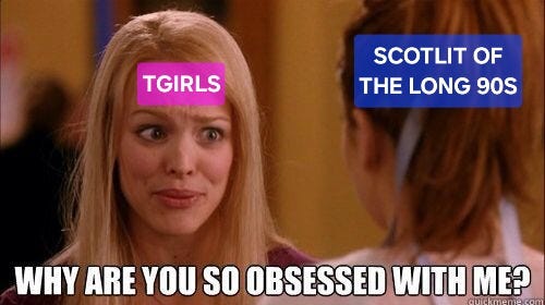 Back in 2024 I was asked to contribute a chapter to the forthcoming Routledge Companion to Scottish Literature, with the broadest brief to write about trans literature in a Scottish cultural context. Trans literature in a Scottish cultural context occupies about 85% of my thinking time, so it was a challenge to pick a subject, but in the end I used the opportunity to work away at an issue that had been niggling at me for years: why, in the last decade or so of the twentieth century, were there so many novels about trans characters in Scottish literature, and why had no-one written about it?